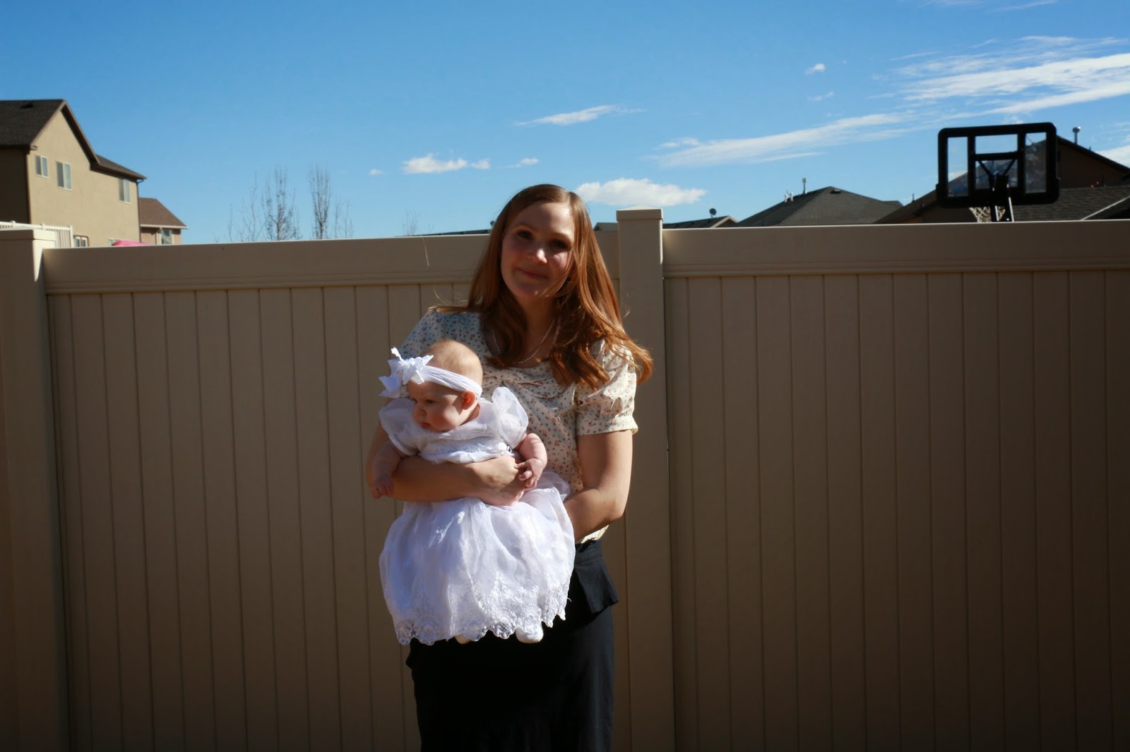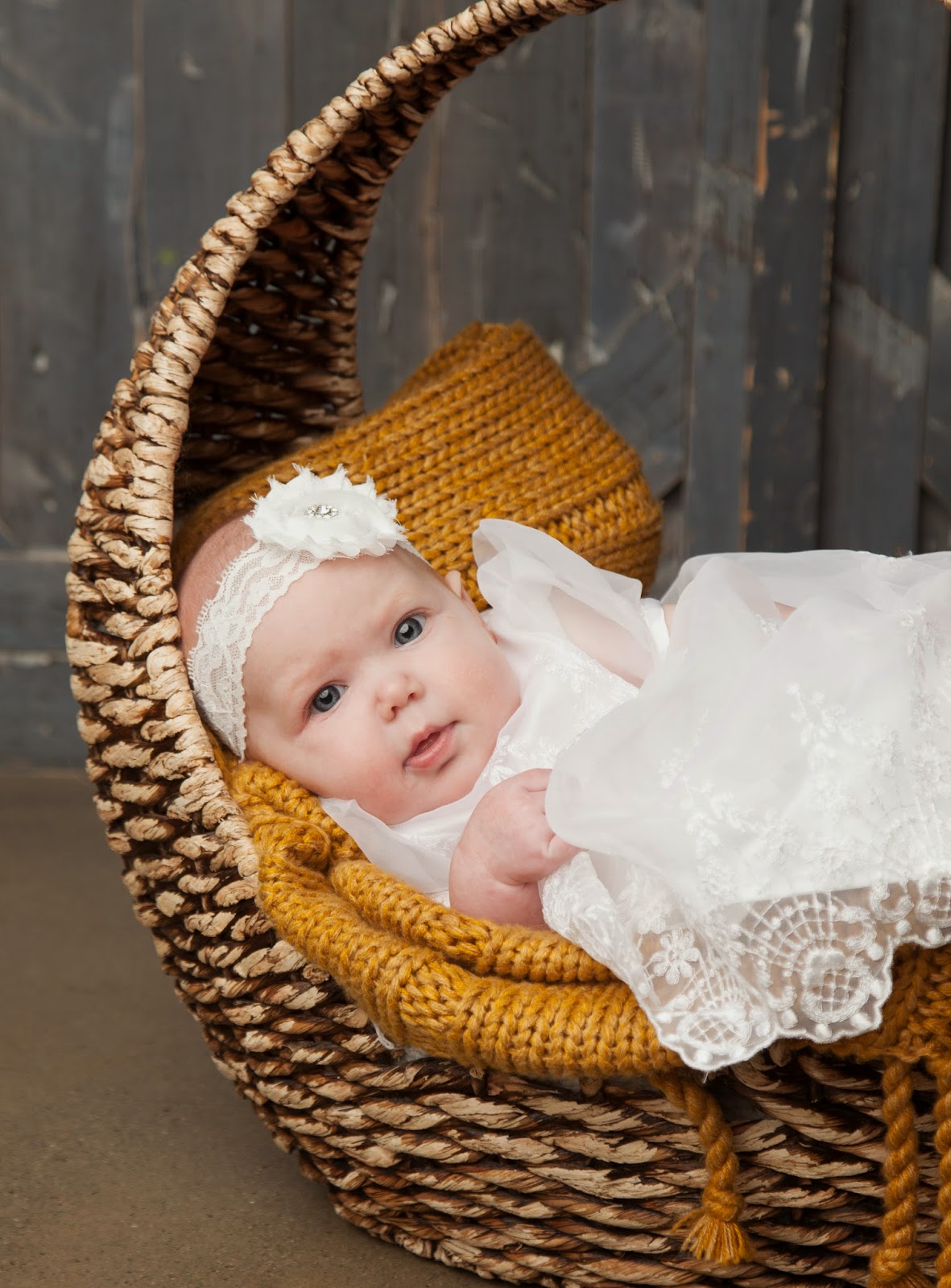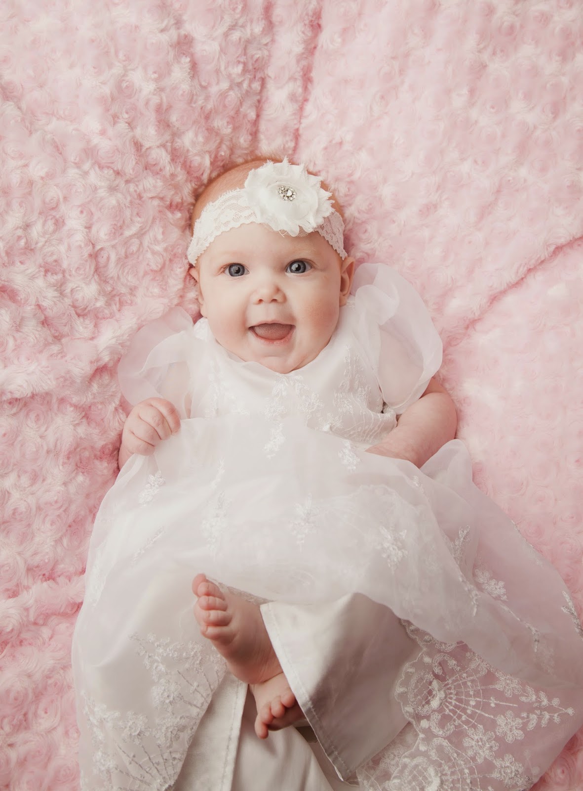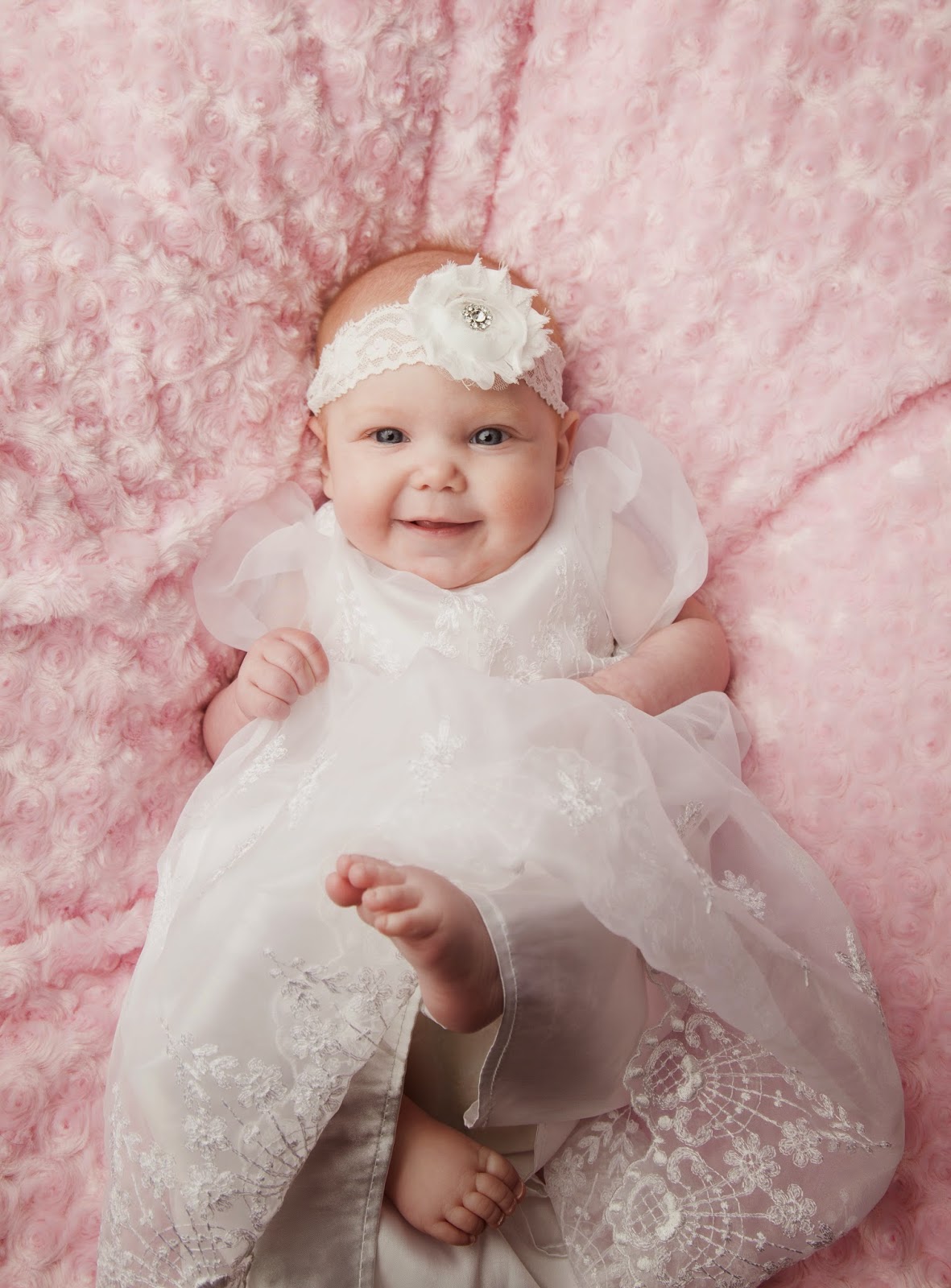 These are some pictures of Addison in her blessing dress! She wasn't in the best of moods but I just love them! I know it's not the norm but Addison is wearing the same dress that Savannah was blessed in.