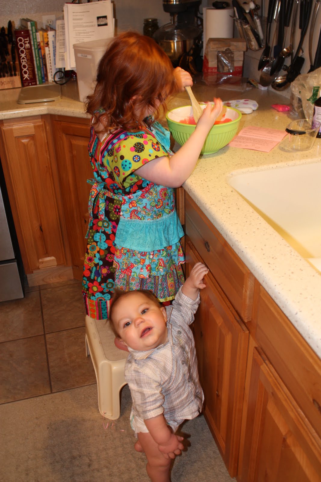 My mom had given Savannah this cute little Pink Princess Flower cake kit! Savannah and me had so much fun baking it! Savannah even got to wear her cute new apron that my aunt made for her, "Savannah's princess apron" so Savannah calls it! I hope one day I can be even half as talented as my aunt!